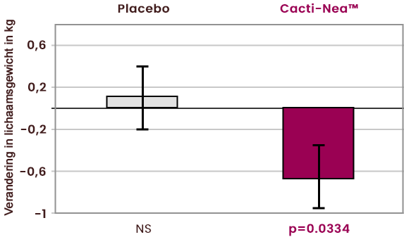 49 vrouwen met een normale body mass index deden mee aan een van de onderzoeken naar de werkzaamheid van Cacti-Nea™. De dames werden in twee groepen verdeeld. De vrouwen in de eerste groep kregen overdag 2 g Cacti-Nea™, terwijl de vrouwen in de tweede groep een placebo kregen. Na 28 dagen werd bewezen dat Cacti-Nea™ - in tegenstelling tot placebo - de hoeveelheid water in het lichaam significant vermindert en aan gewichtsvermindering bijdraagt.